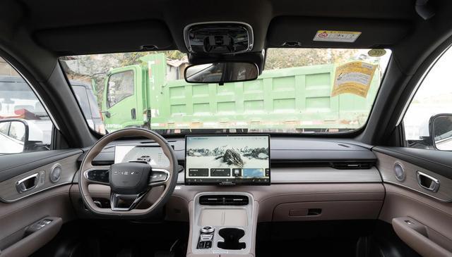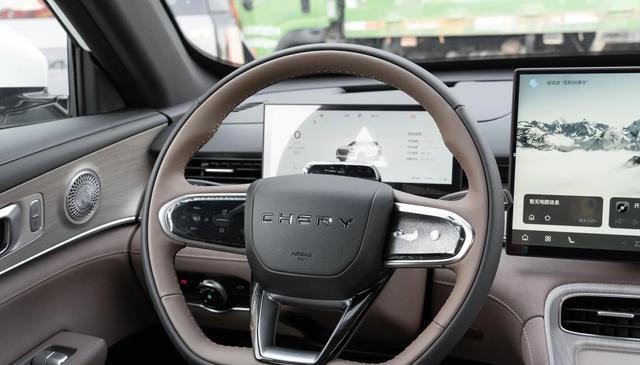 至于内饰,瑞虎8 PLUS整体比较中规中矩,中控台采用对称式的布局,中间是一块15.6英寸的悬浮式大屏,还配备了10.25英寸的全液晶仪表,芯片采用高通骁龙8155,操作灵敏,反应迅速。车机系统也比较人性化,平底式的三幅方向盘尺寸适中,上面还有钢琴烤漆以及银色饰条进行修饰,增加了档次感。值得一提的是,内饰使用了大量的仿皮软性材质进行覆盖,面积达到78.9%。因此手摸上去并不会像塑料那样硬邦邦的感觉,在同价位里还是比较精致厚道的。