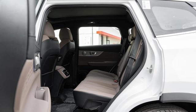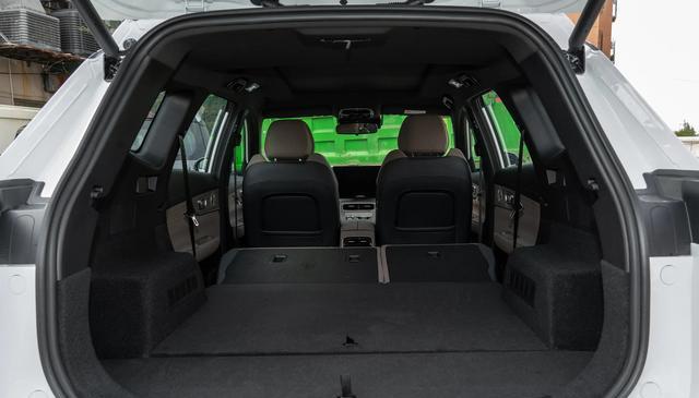 座椅布局方面有五座和七座可选,当然这样的体型和轴距5座是首选,7座显然就比较鸡肋了。仿皮材质的座椅填充物比较厚实,主驾驶座能够电动调节,后排支持4/6比例放倒,并且座椅材质方面还是比较厚道的,上面加了一层磨砂的质感,除了能够增加耐磨度以外还能防滑,并且手感也不错。后备箱容积对于5座来说还是非常宽敞的,常规状态下有889L,放倒后排后最大空间能够扩展至1930L,自驾游放大件行李完全没有压力。